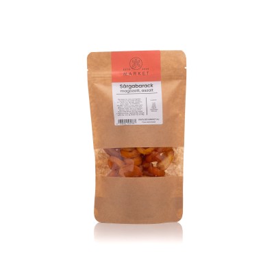 Cukormentes, kimagozott aszalt gyümölcs biológiailag lebomló, visszazárható csomagolásban a frissesség megőrzéséért.Összetevők: cukormentes, kimagozott aszalt barack, kén-dioxid (t..