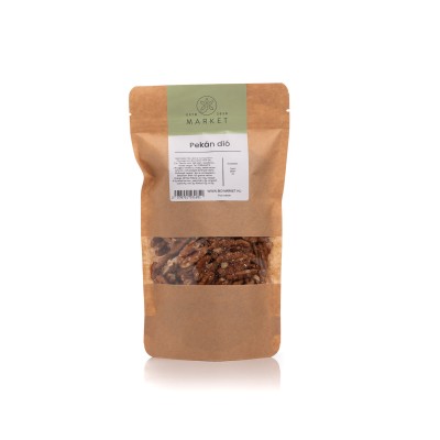 Biológiailag lebomló, visszazárható csomagolásban a frissesség megőrzéséért.Összetevők: 100% pekán dióTápérték 100 g termékben:
